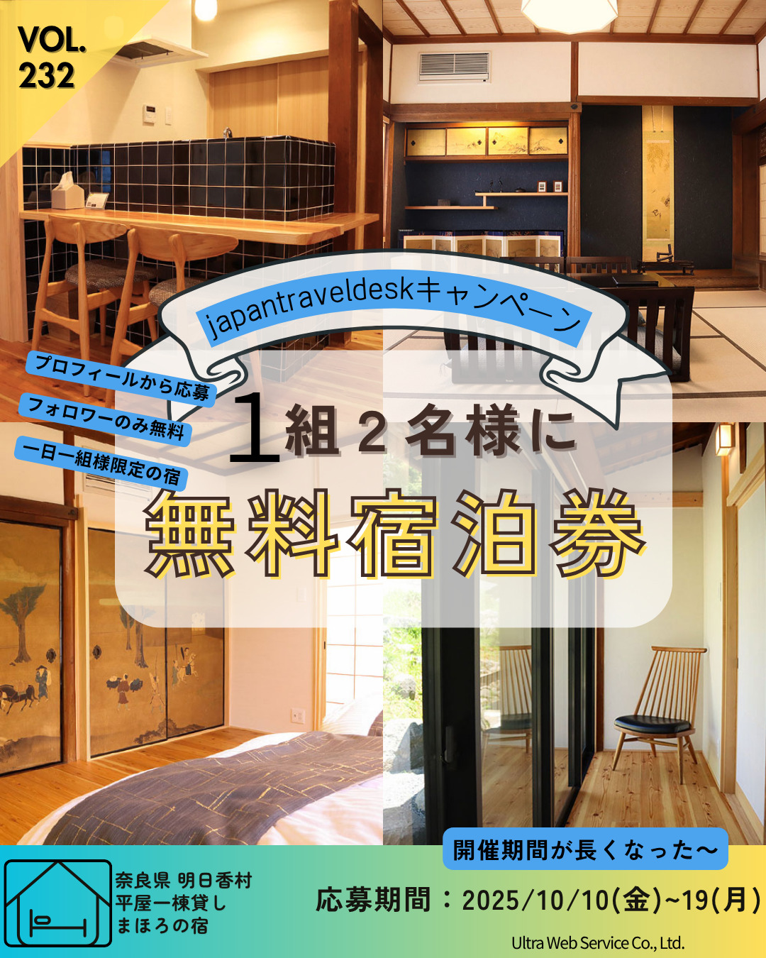 明日香村観光の拠点に最適な一棟貸し古民家宿「まほろの宿」とJapanTravelDeskがタイアップ❗️無料宿泊キャンペーンを実施中🎉第232弾🎉