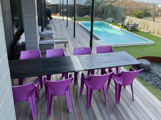周囲を気にせず、仲間や家族だけで過ごせる完全プライベート空間です。アートが映える設計と、窓いっぱいに広がるオーシャンビュー。