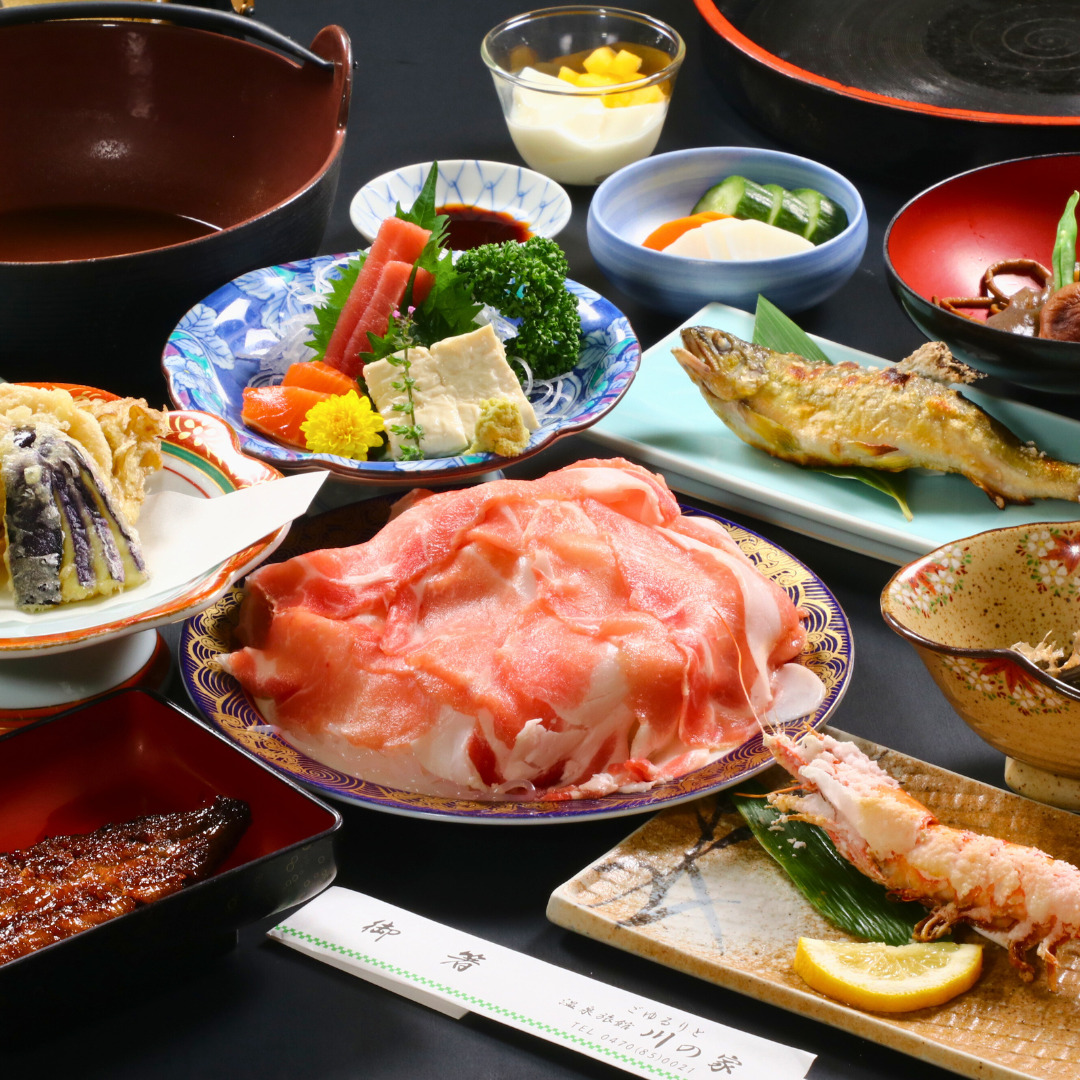 眼下を流れる養老川の音をBGMに、黒湯の温泉と郷土料理を味わう滞在。