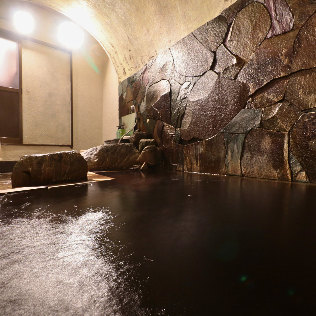 中でも洞窟風呂は、この旅館を訪れた多くの人が印象に残す名物です。岩に囲まれた空間に湛えられた黒い湯は、初めて目にすると驚かれることも多く、非日常感をしっかりと味わえます。やわらかな湯ざわりと落ち着いた空気の中で、身体を温めながら静かな時間を過ごすひととき。