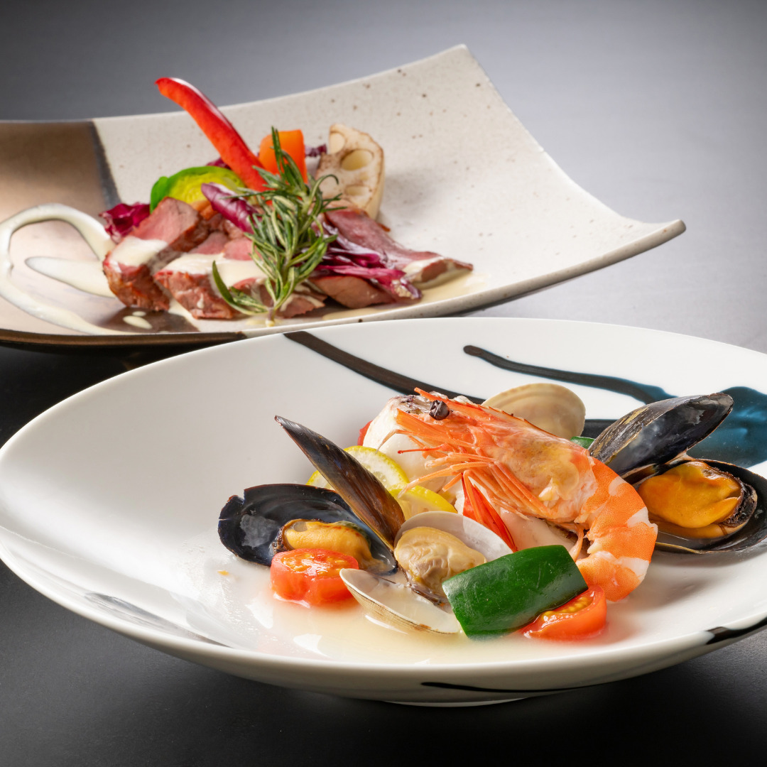 瀬戸内の恵みを味わうひとときは、館内レストラン「イルマーレ」で。