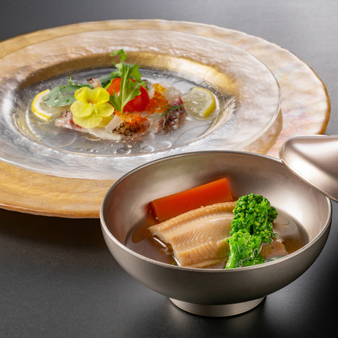 ここでは、和の繊細さとイタリアンのエッセンスを融合させたコース料理が提供され、瀬戸内の旬の食材を活かした一皿一皿がテーブルを彩ります。中でもぜひ味わいたいのが、伊予牛のステーキ ローズマリーみそソース添え。