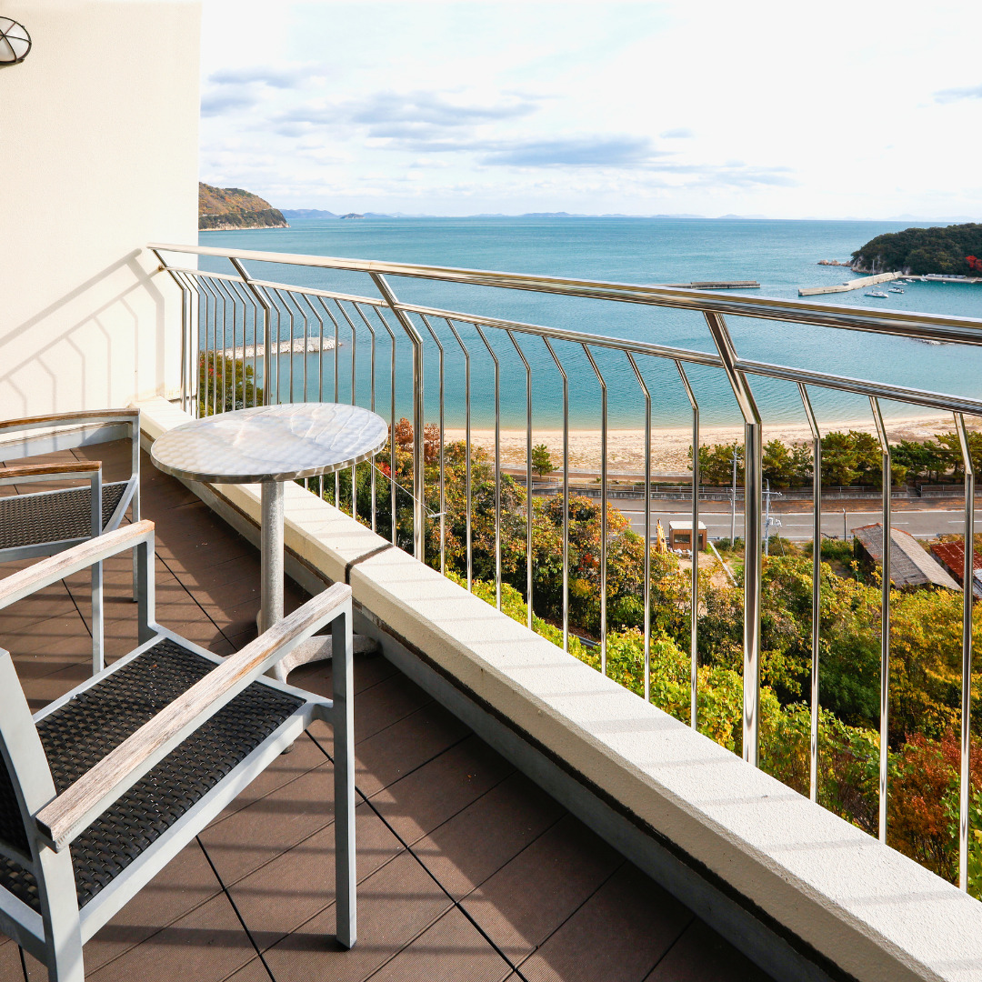 客室のバルコニーに立てば、島ならではの穏やかな空気と瀬戸内の景色が広がり、ここで過ごす時間そのものが旅の思い出になっていきます。お食事