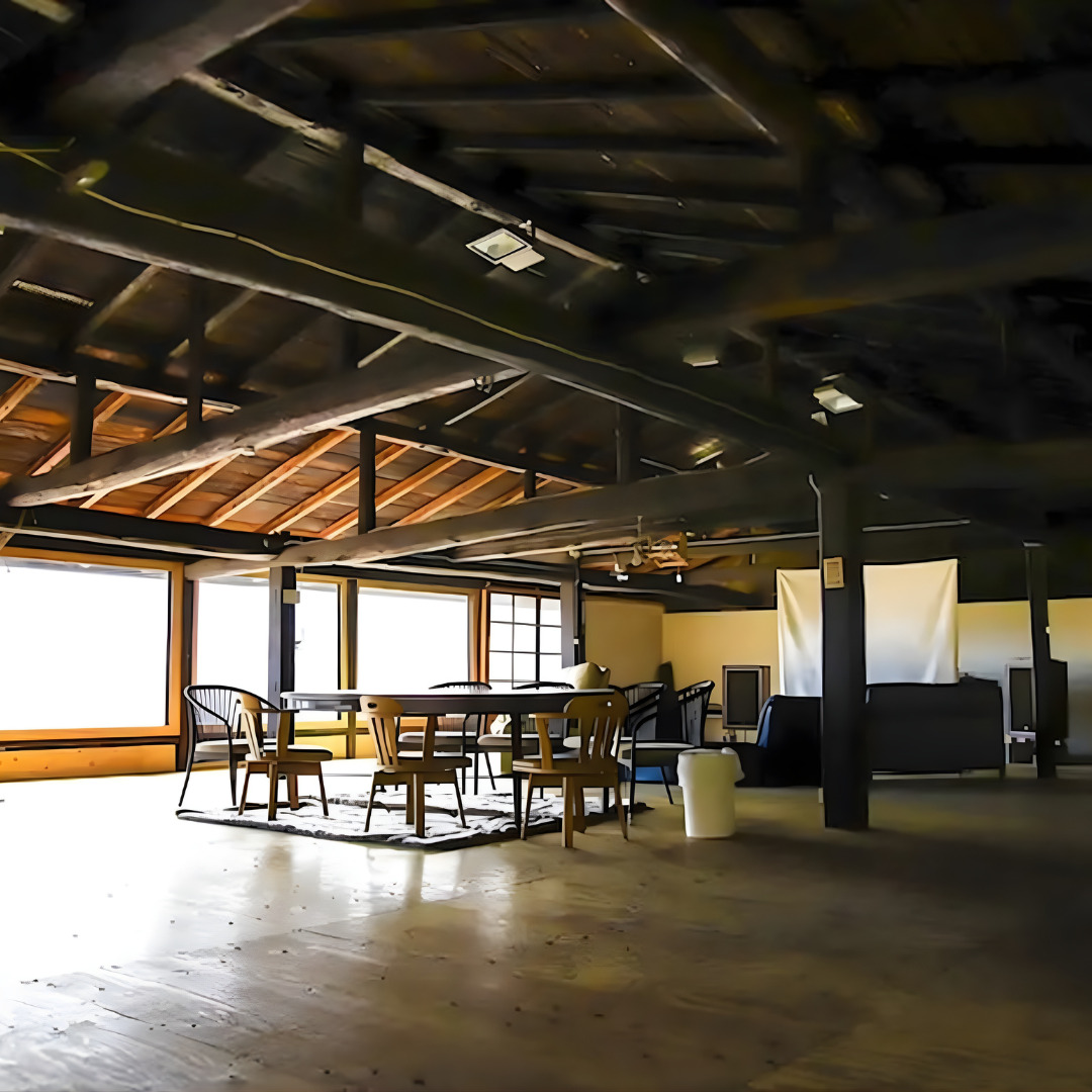 田舎の原風景に包まれながら、囲炉裏で炭火を囲んだり、広々とした2階で映画を観たり。