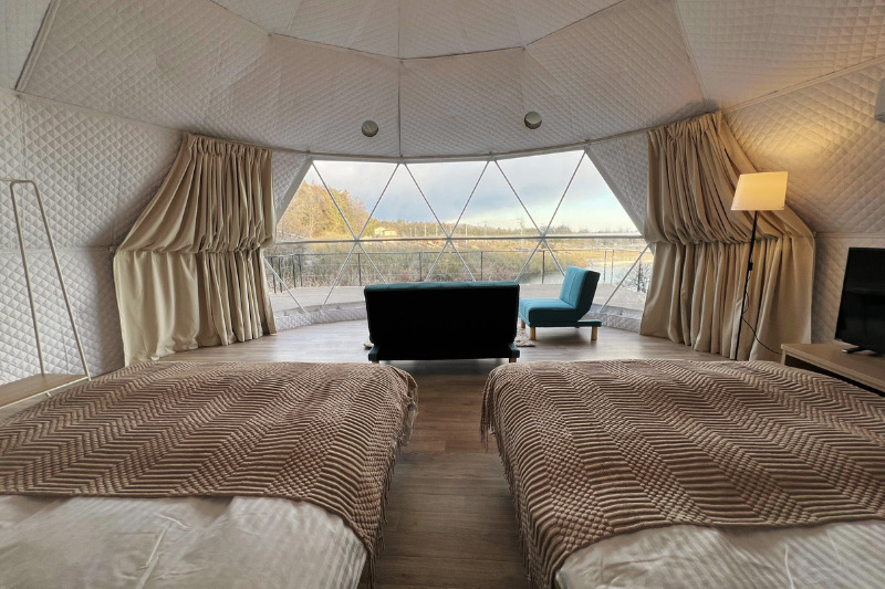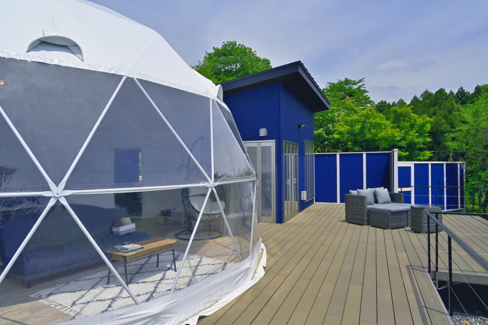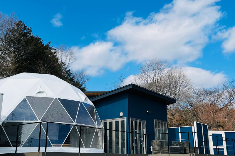 赤城山の自然に抱かれた前橋の高台に佇む「GlampingArea水と風と月」。