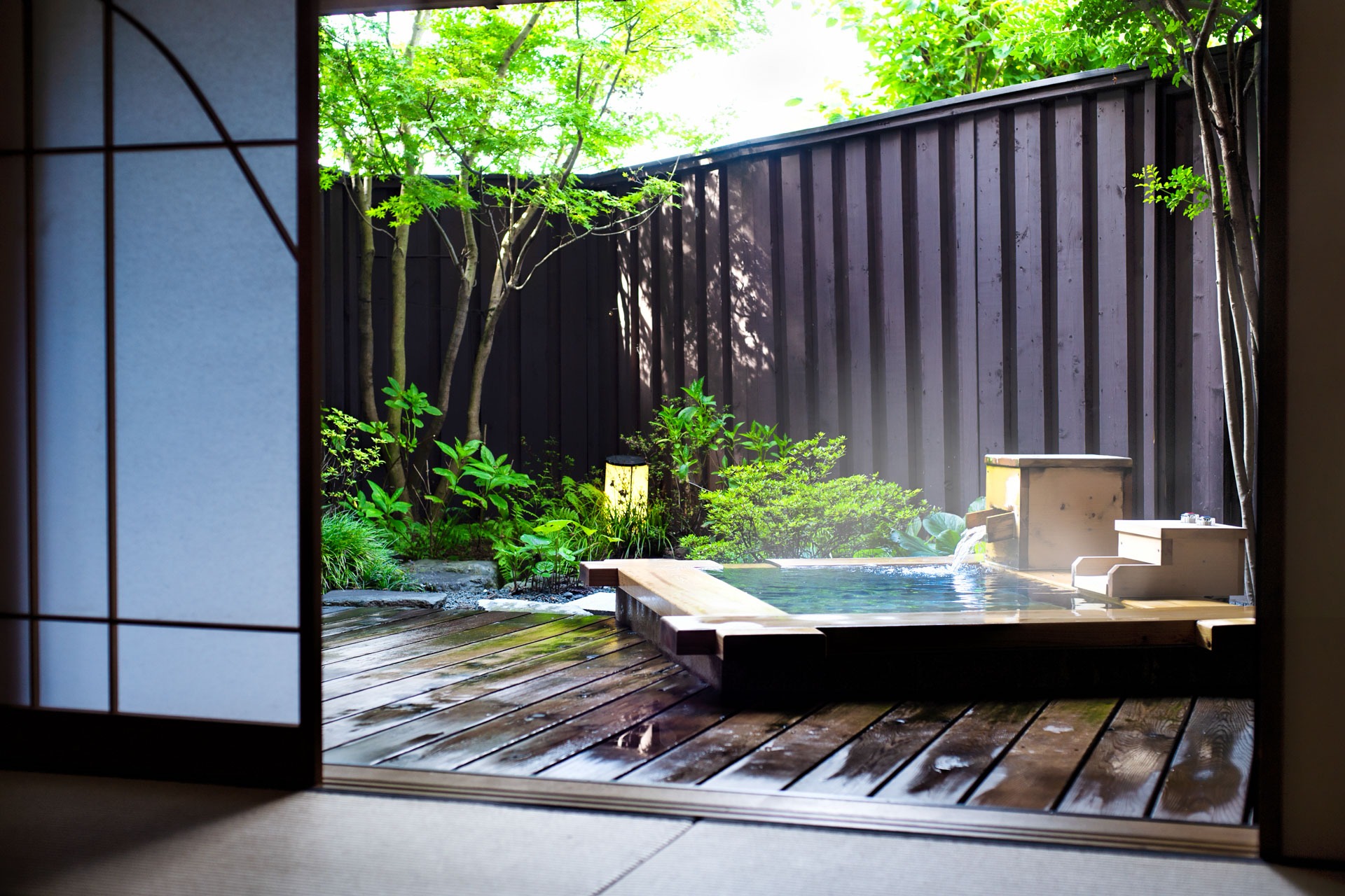 ただ湯に浸かるだけの時間。さらに姉妹施設「山屋蒼月」の大浴場も利用可能。