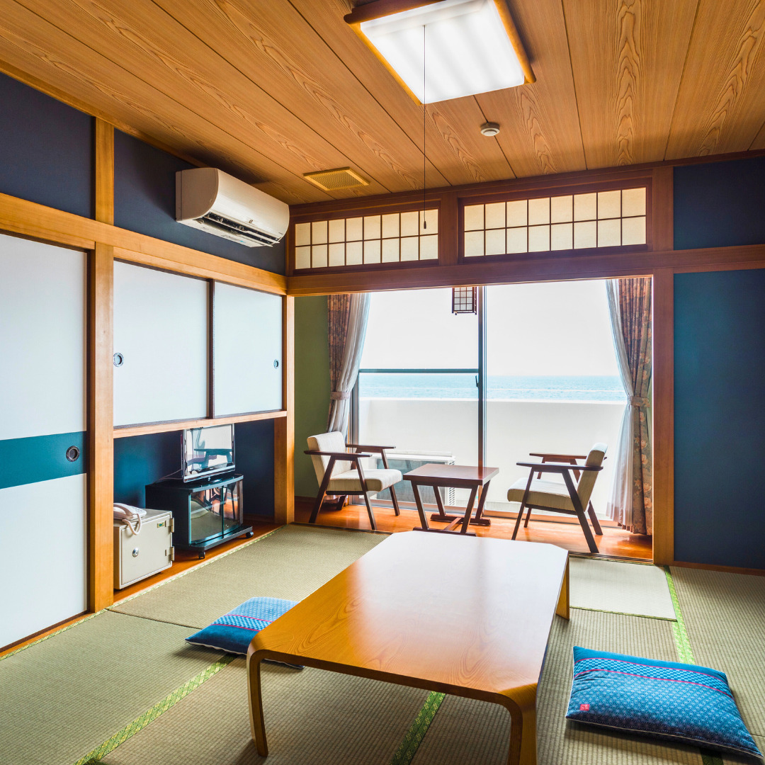 和室は畳敷きに障子や木の建具が調和し、窓辺の椅子に腰をかけるとまるで額縁に切り取られたような海の景色が広がります。