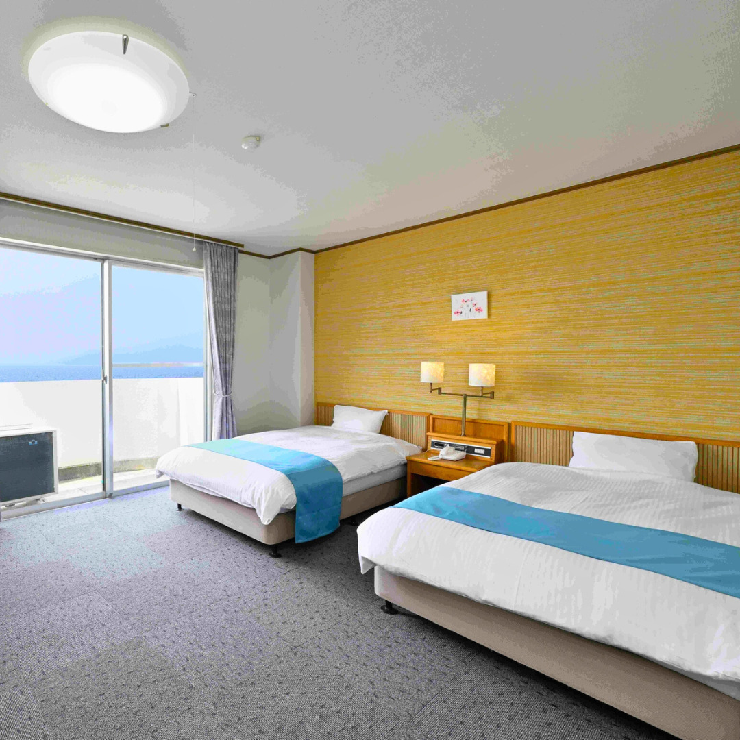 すべての客室はオーシャンビュー。大きな窓からは瀬戸内海の絶景が広がり、時間帯によって表情を変える景色を楽しむことができます。特に夕刻には、山へと沈む夕陽が海を茜色に染め上げ、一日の締めくくりにふさわしい贅沢なひとときを演出します。