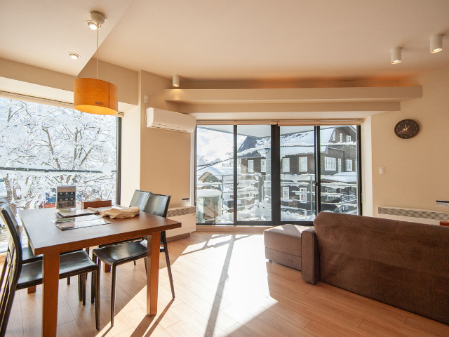 ・レストラン・バーすべて徒歩圏 ・コンパクトで快適なコンドミニアム ・冬のナイトライフを楽しむゲストにも人気 ・初めてのニセコ旅にも安心の立地 象徴的な景色: 街の灯りが映る冬の夜景。