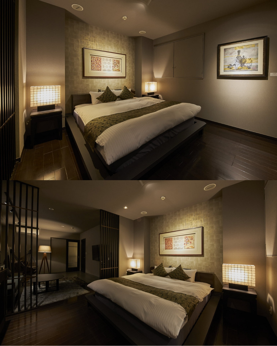 最上級の「Kura Suite」は、アートと快適さが融合した贅沢なひと部屋。