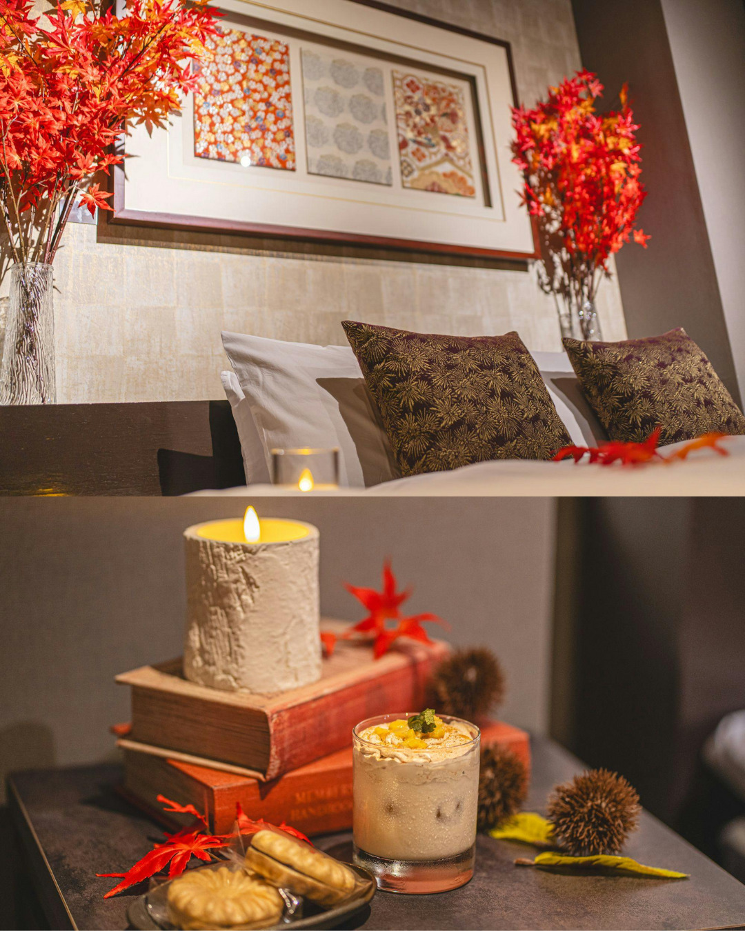 和モダンなインテリア、藍染めや古伊万里をイメージした調度品が散りばめられ、 日常とは少し違う“美しい旅の時間”を演出しています。 チェックインから「酒蔵Bar」での日本酒フリーフローという新しいスタイル。 ひとり旅やカップルはもちろん、女性同士でも“お酒を楽しみながらゆったり”過ごせる空間です。 季節限定のカクテルや、特別な装飾をしたお部屋も!! さらに嬉しいポイントとして、客室には人気ブランド ReFa のヘアドライヤー&シャワーヘッドが設置、 またアメニティとして“いち髪”が用意されているプランもあるので、 旅先でも“髪も肌もちゃんとケアしたい”という方にぴったりです! ※季節のカクテルなどは時期により変わるそうです。