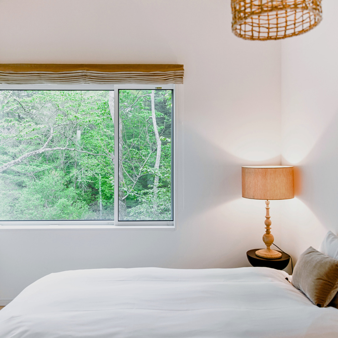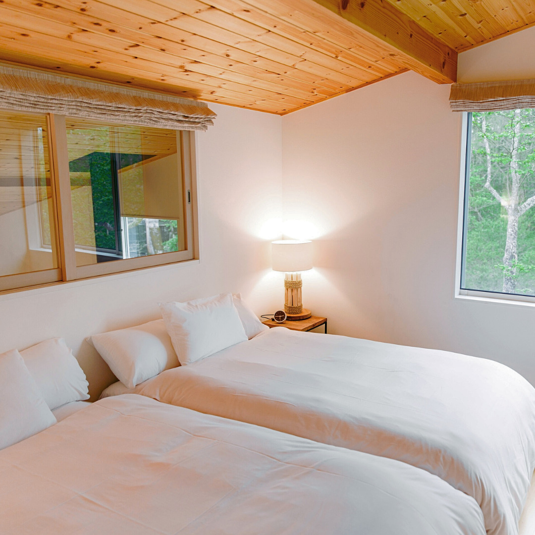 BGMや香りは自然任せ。森の音と木の香りに包まれる、五感で味わう癒しの滞在が叶います。