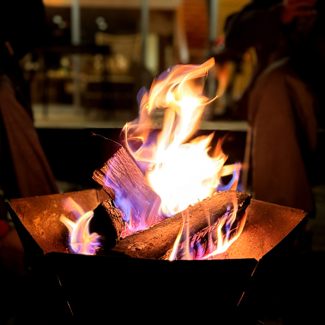 夜が更けたら、焚き火を囲んで星空を眺めながら語らいのひととき。自然の音に包まれながら、ゆったりとした時間が静かに流れていきます。the Hours KARUIZAWAで過ごす夜は、心をほどく贅沢な時間です。