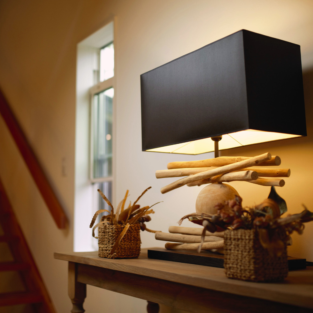 籐のライトやアンティーク調のチェアなど、ヴィンテージとモダンが絶妙に溶け合う空間です。