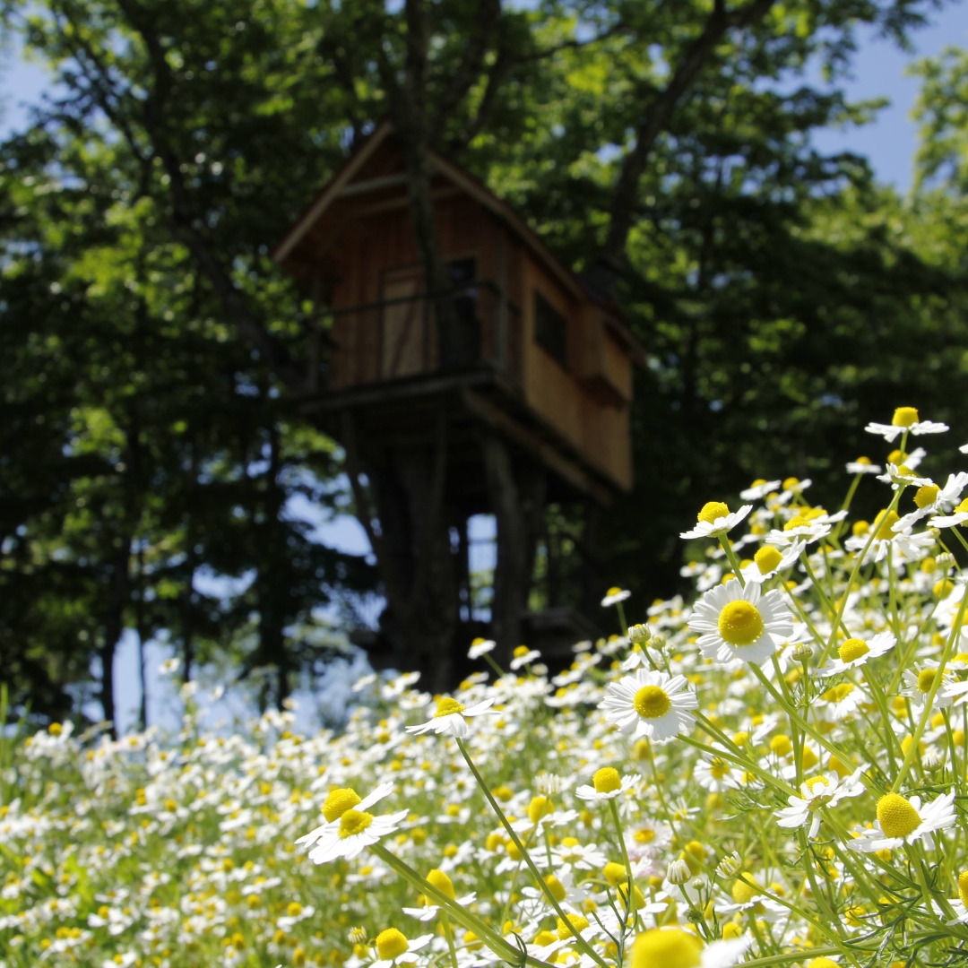 カミツレの宿 八寿恵荘は、四季折々の美しい風景に囲まれたカモミール畑の中に佇む、小さな木の宿です。