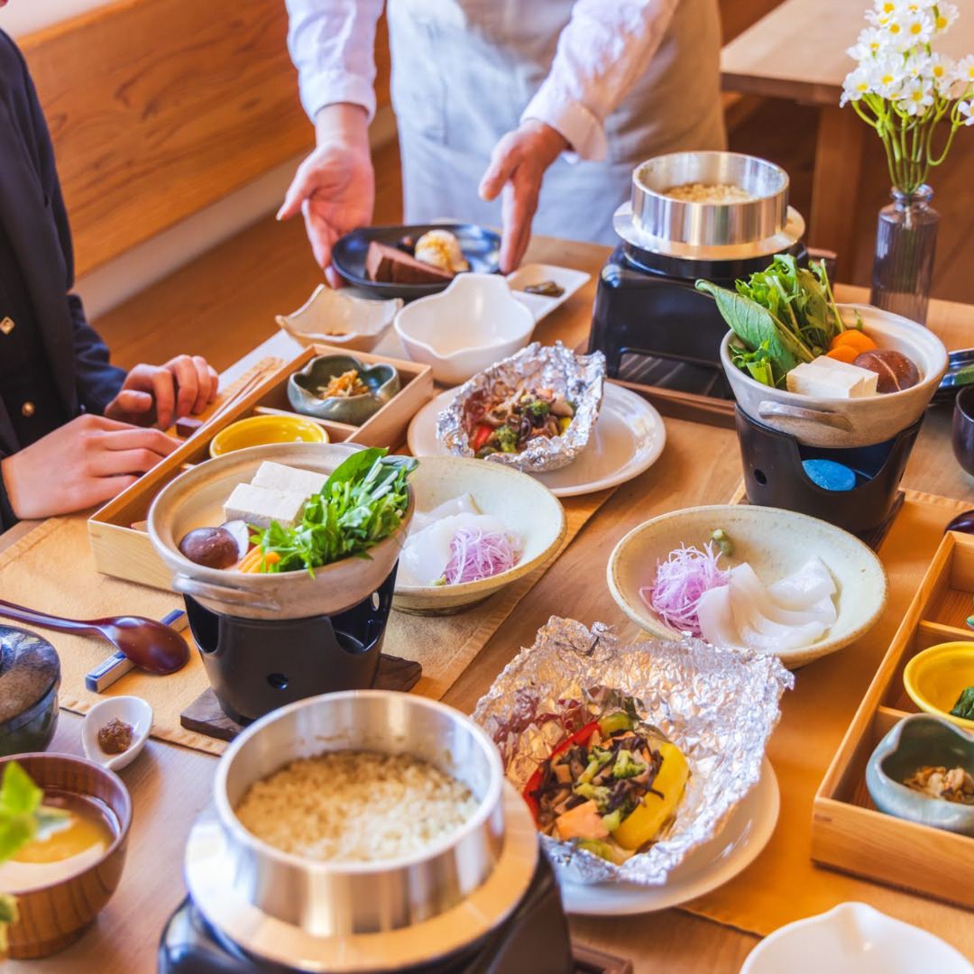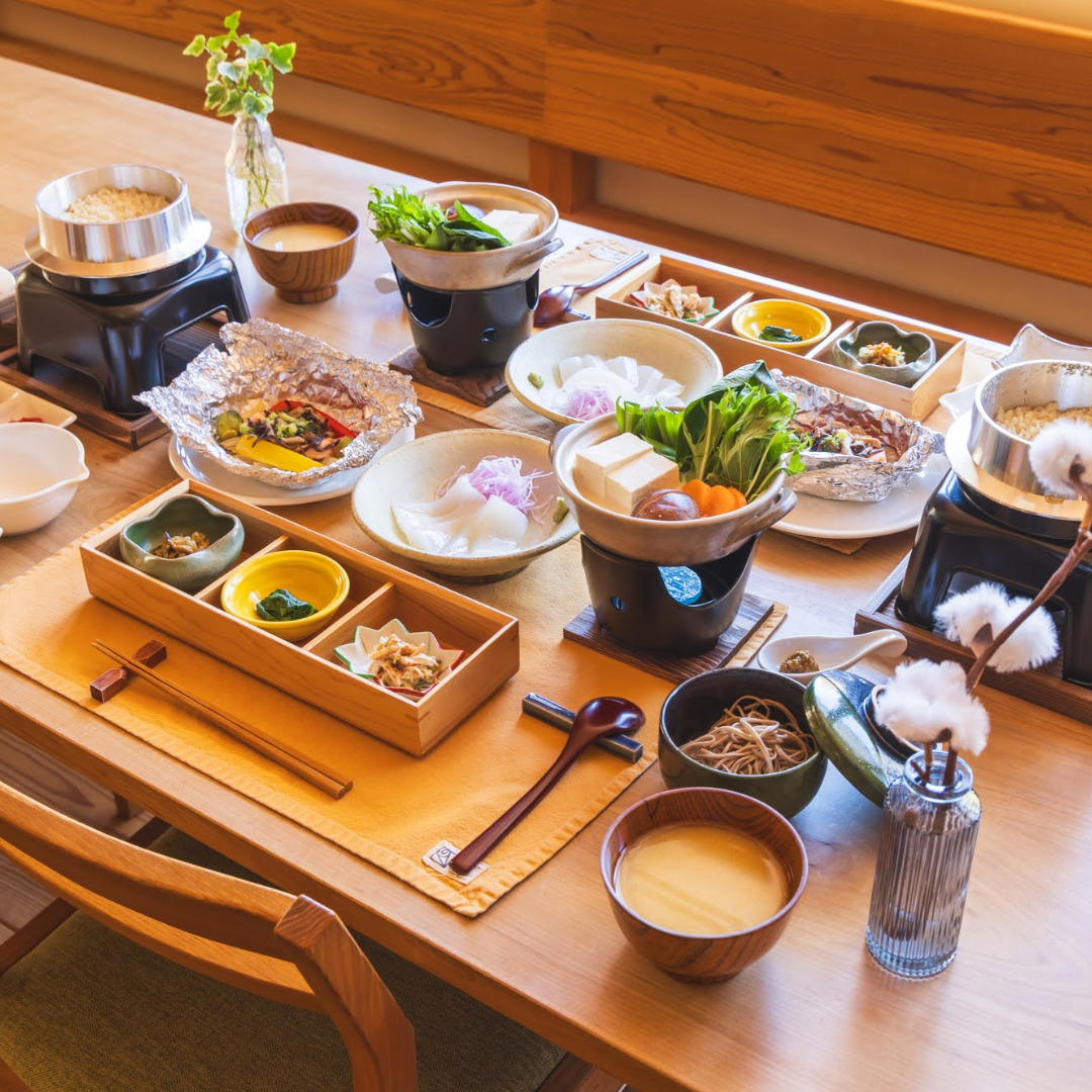 夕食では、カモミールの香りをまとわせた釜炊きご飯や、豆乳仕立てのオーガニック蕎麦が人気。