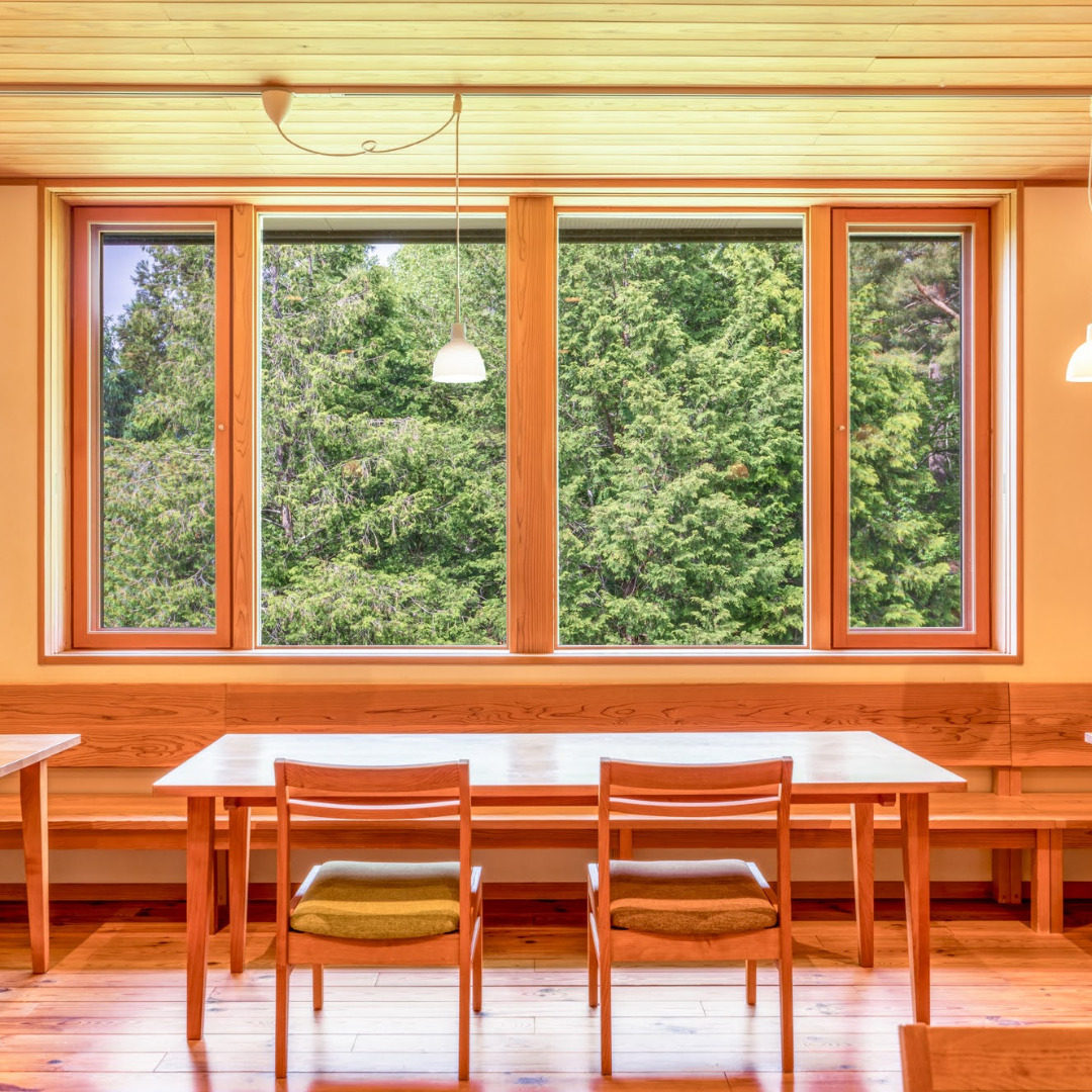 外の景色も一皿のように楽しめる、やさしい空間です。