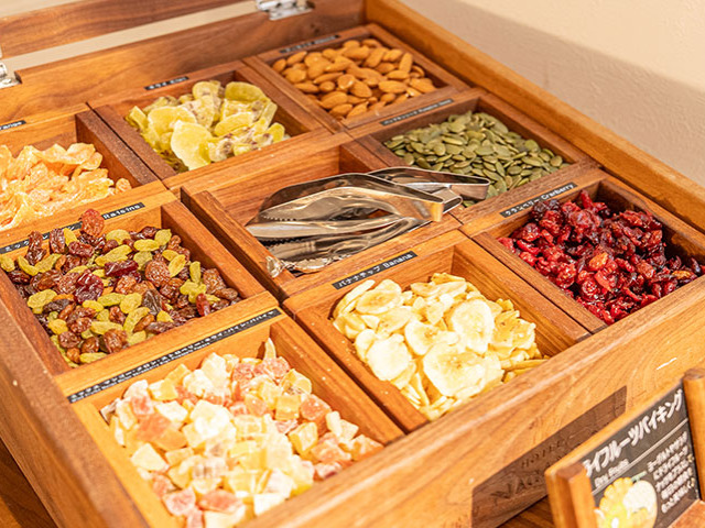 サラダバー、ヨーグルト、ドライフルーツなど、