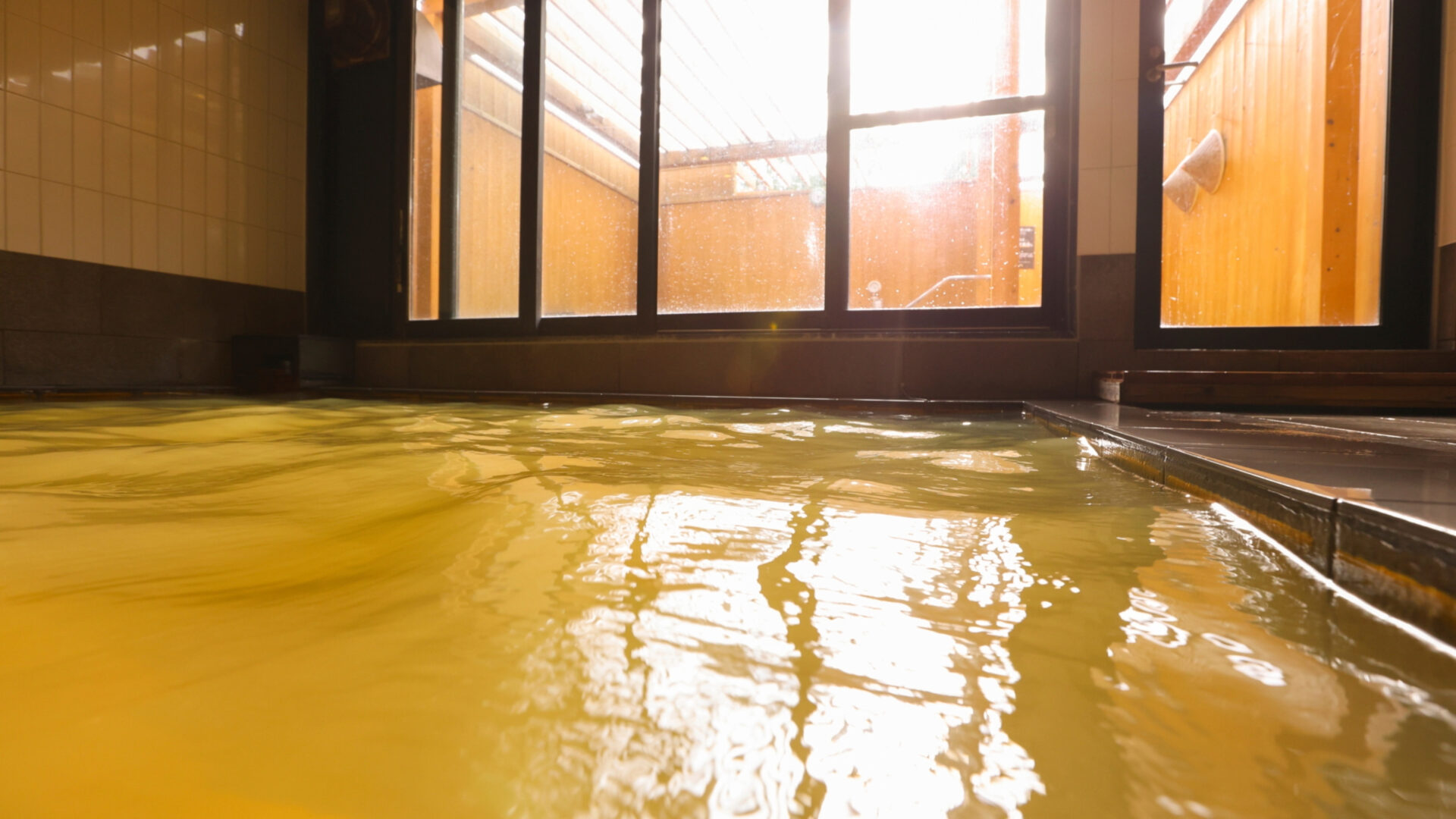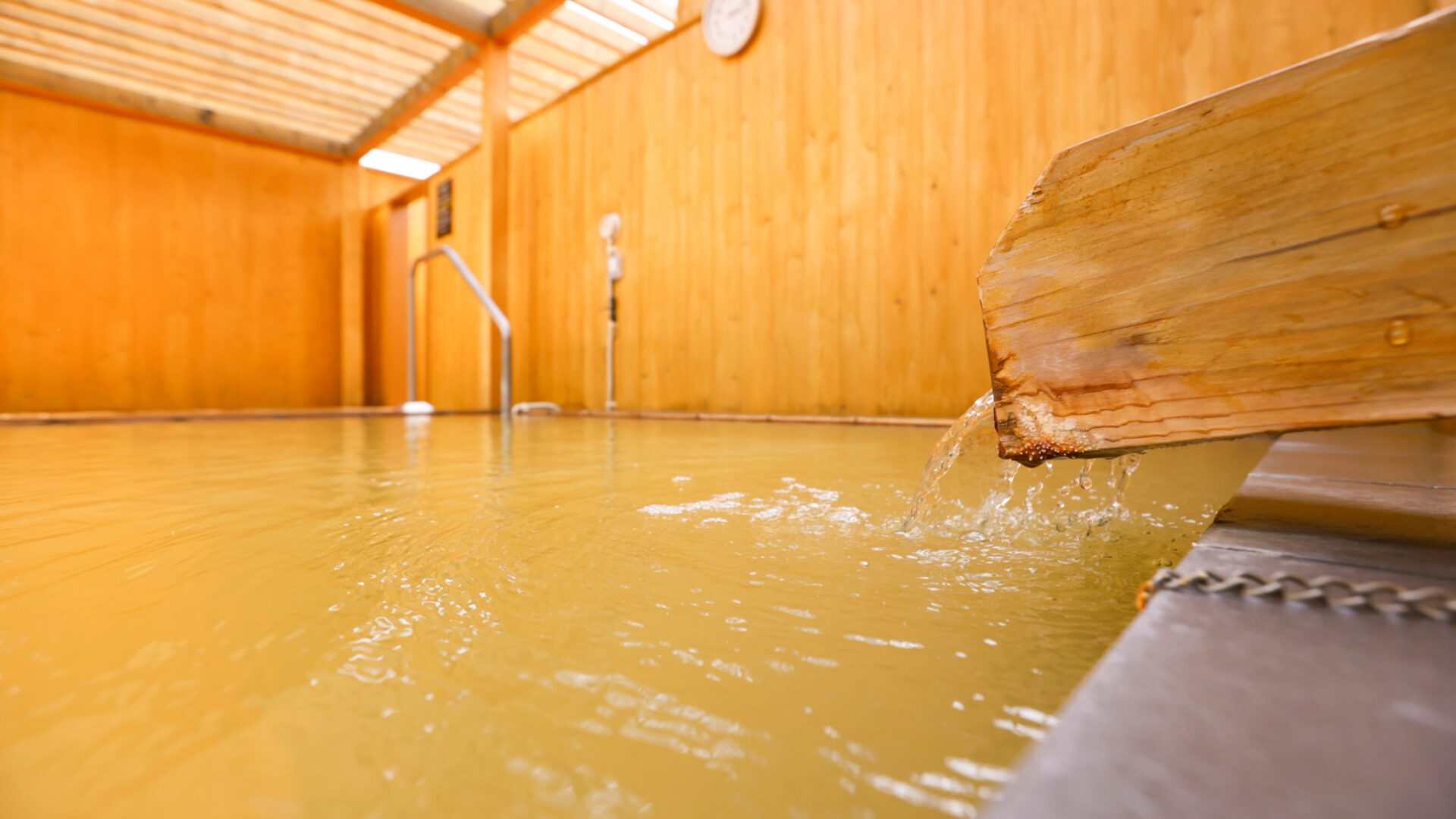 黄金色に輝く、源泉かけ流しの天然温泉