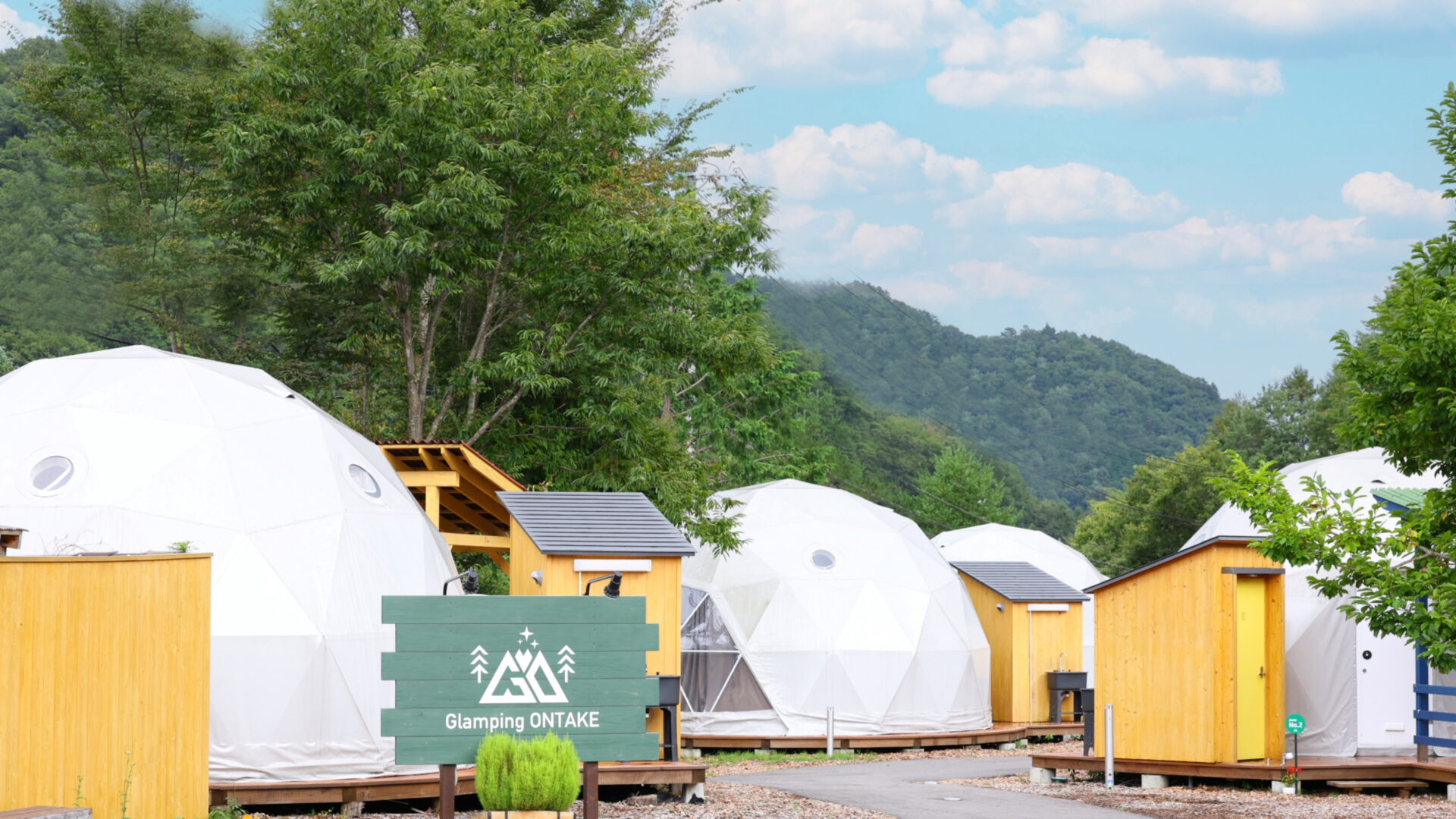 御嶽山麓の自然を舞台にしたグランピングエリアでは、