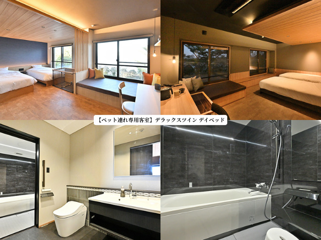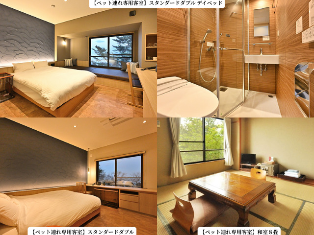 愛犬と同じ空間で、無理なく過ごせる配慮が行き届いています。 また、わんちゃん用のアメニティも必要なものがひと通り揃えられています。