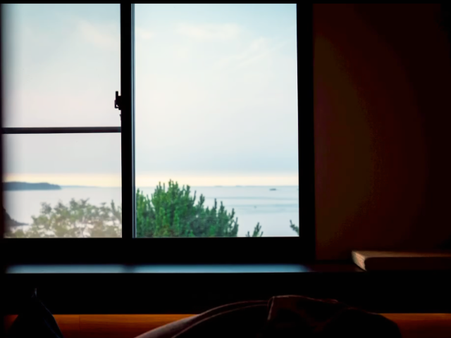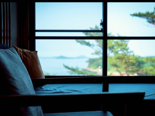 大きな窓の向こうには、時間帯ごとに表情を変える海の景色。