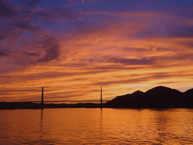 夜には、波の気配だけがそっと寄り添います。 湯に身を沈めると、旅の移動や観光で張っていた身体が、