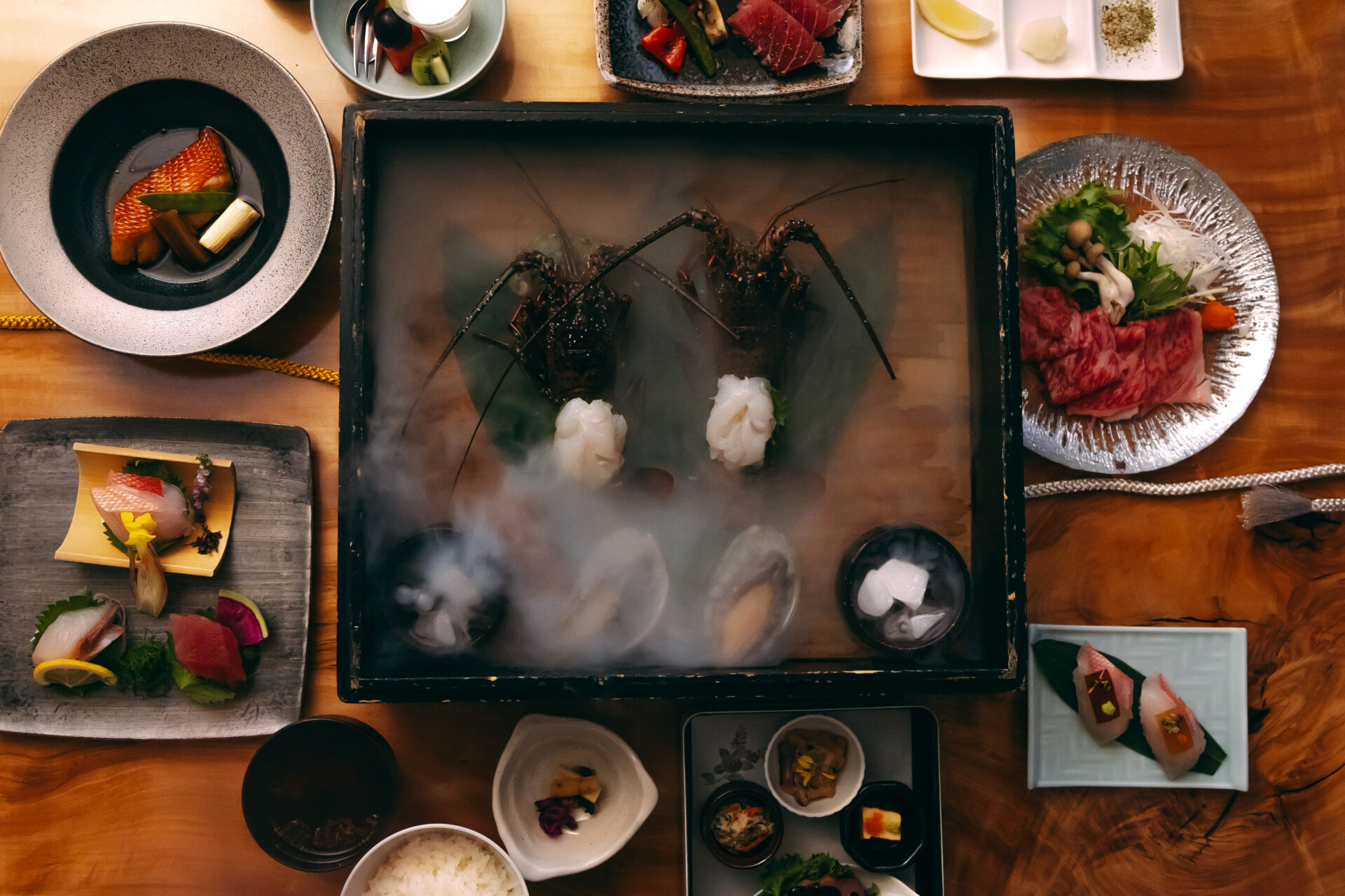 伊勢海老と鮑を盛り込んだ「玉手箱」は