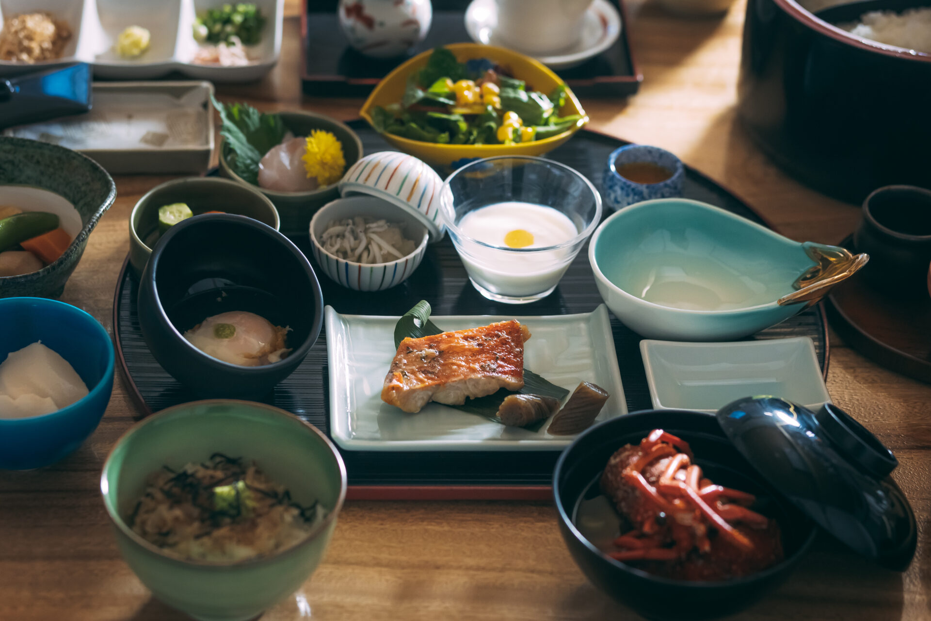 伊豆らしさあふれる和朝食。龍宮会席利用の方には