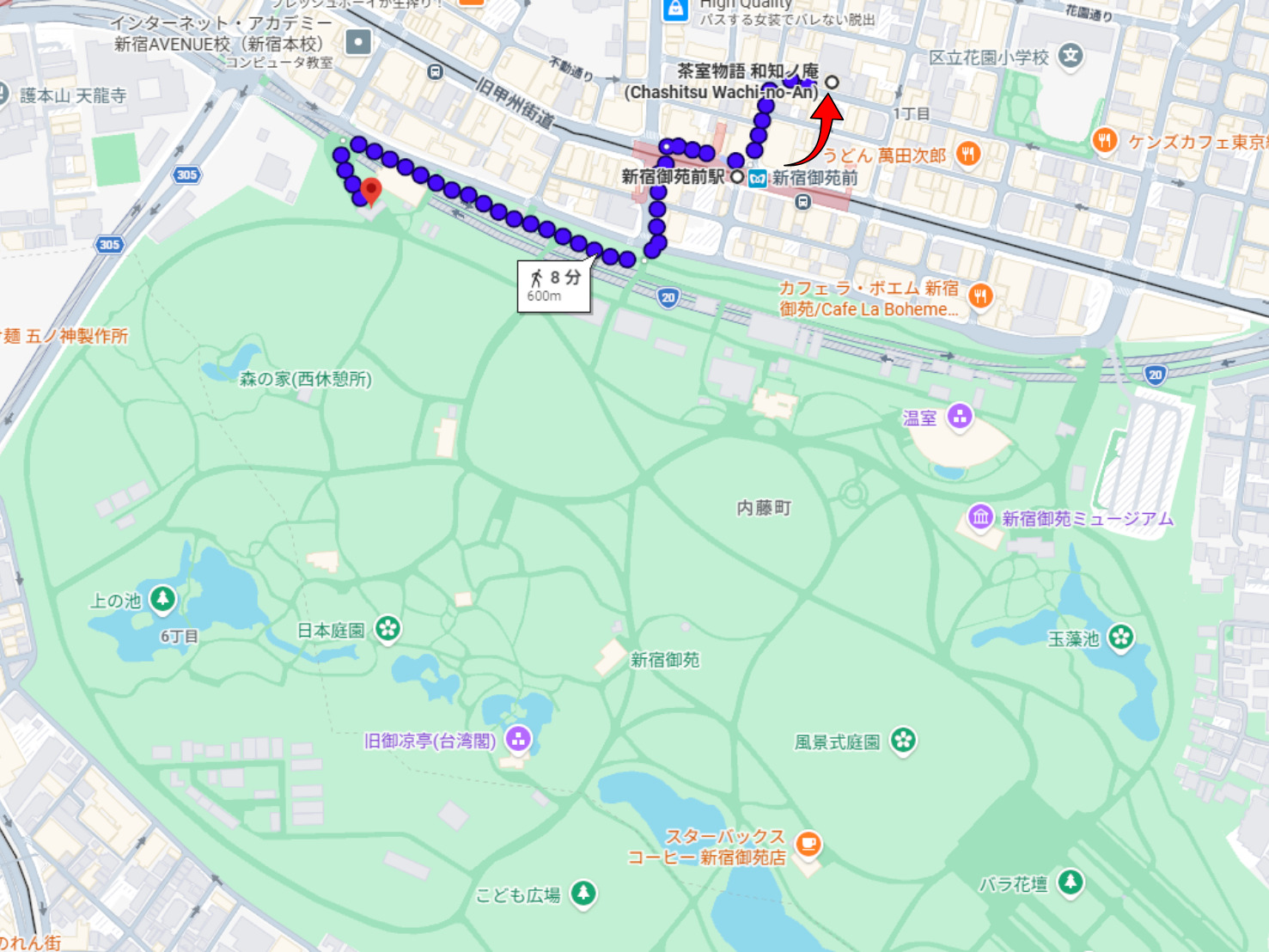 From Shinjuku-Gyoenmae Station (on the Marunouchi Subway Line), it is a two-minute walk to Wachi-no-An.