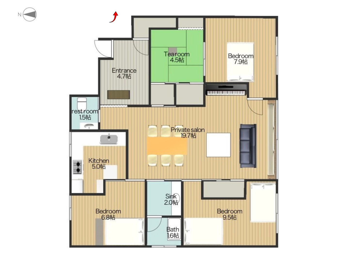 130㎡のプライベート空間。最大7名まで。