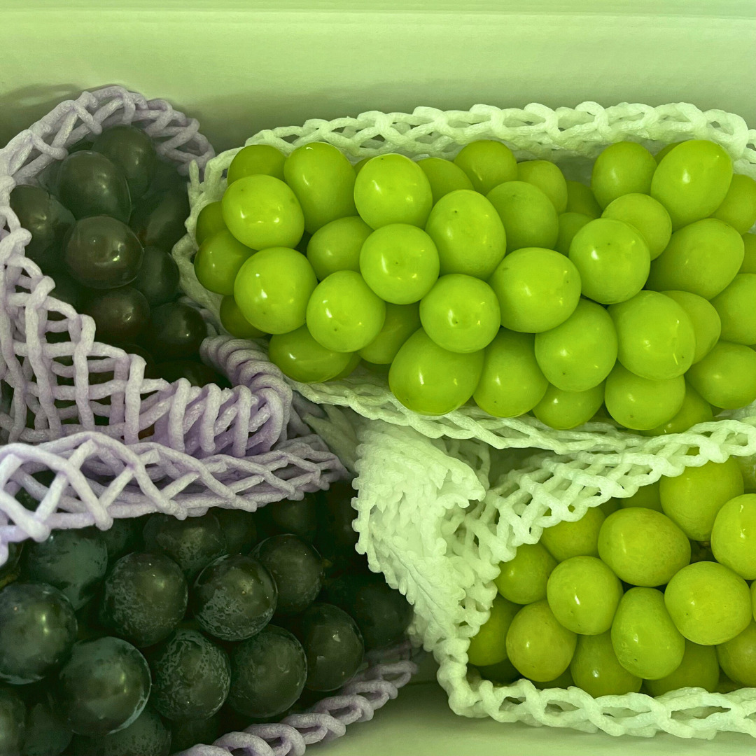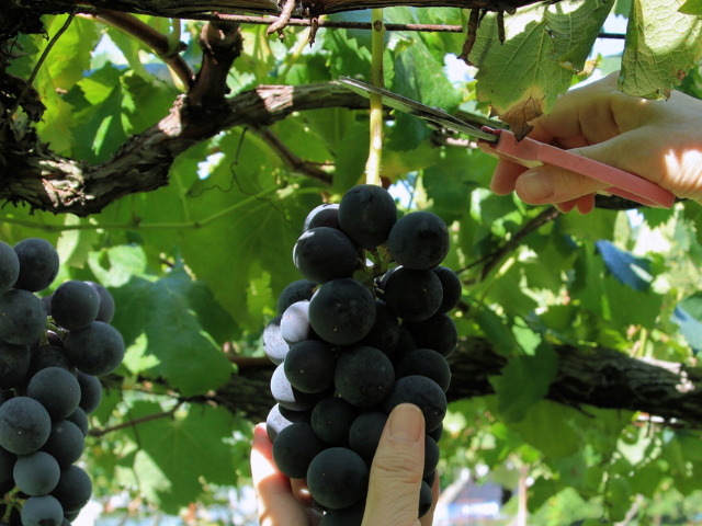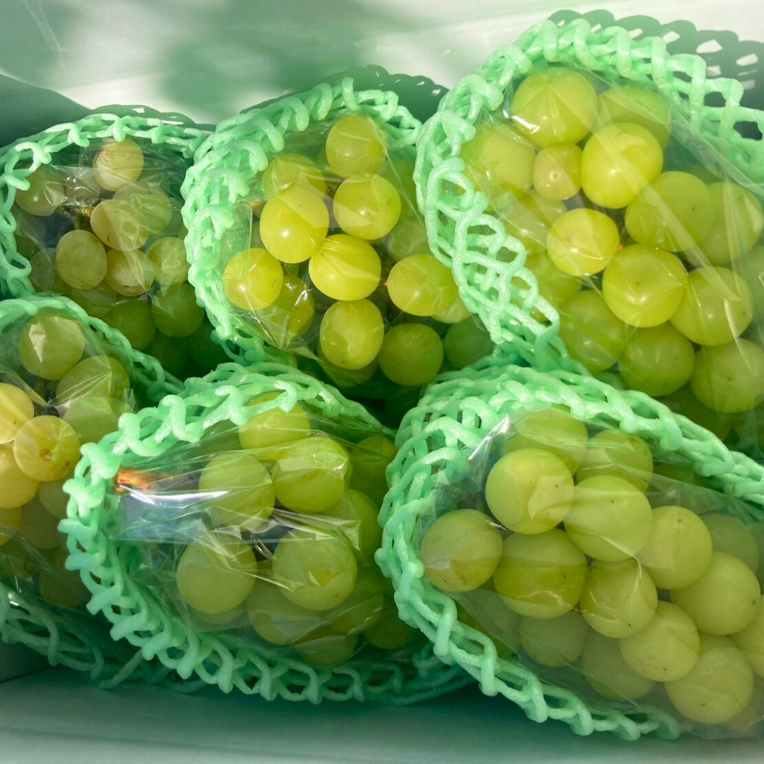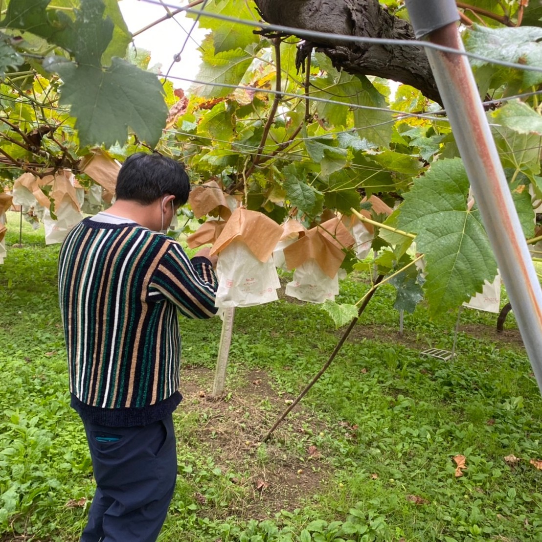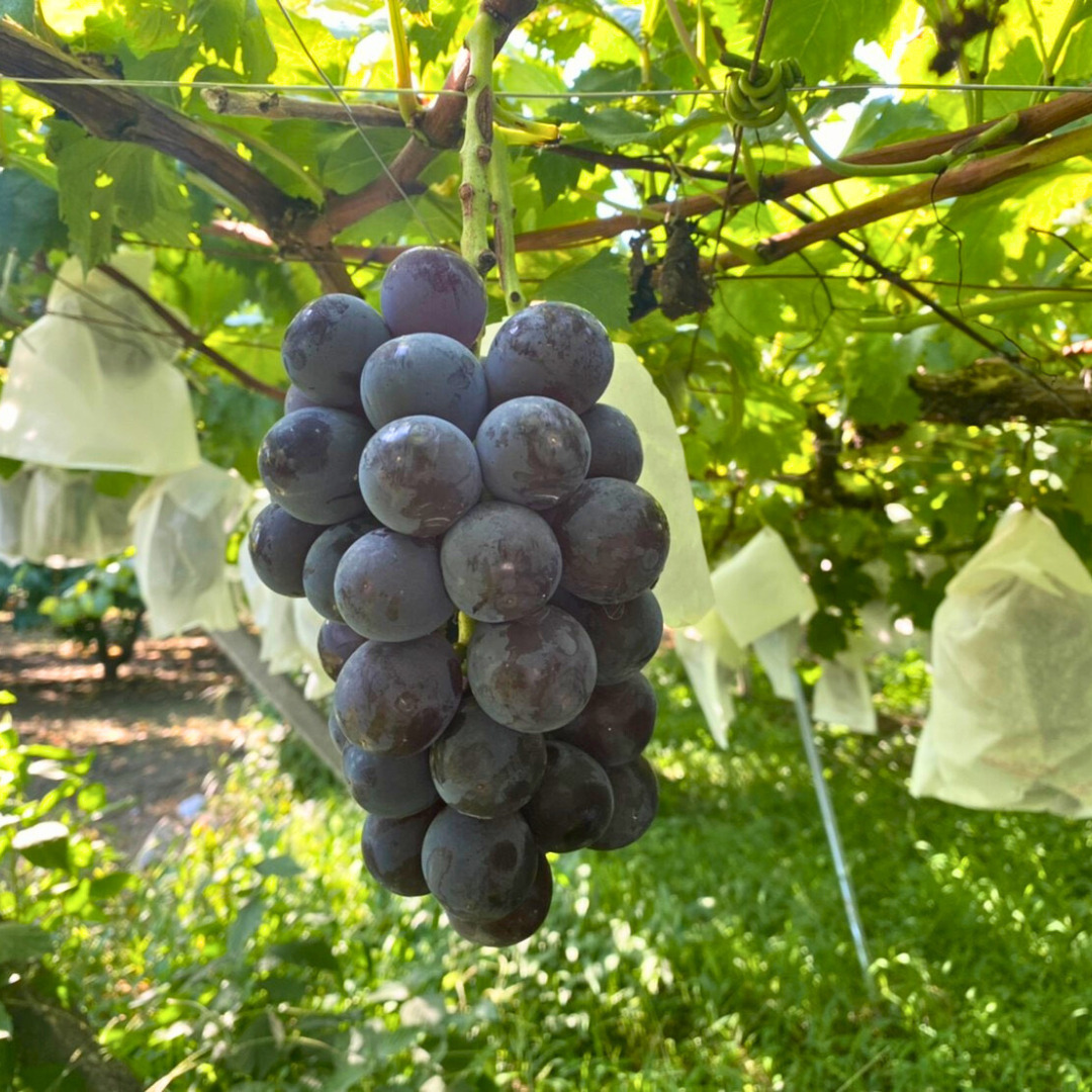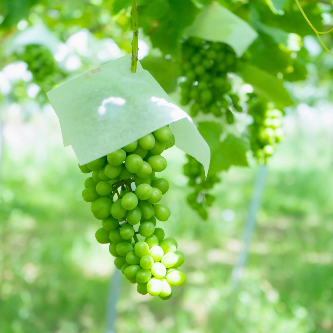 夏から秋にかけては、シャインマスカットや巨峰が育ち、果樹園に芳醇なマスカットの香りが広がります。