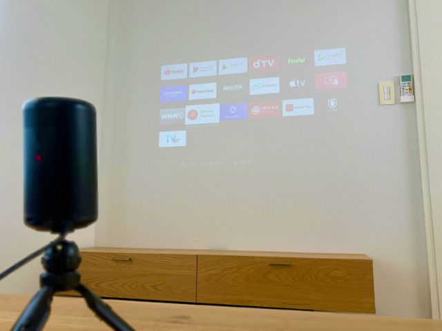 室内にはプロジェクターが設置され、大画面で映画鑑賞が可能。