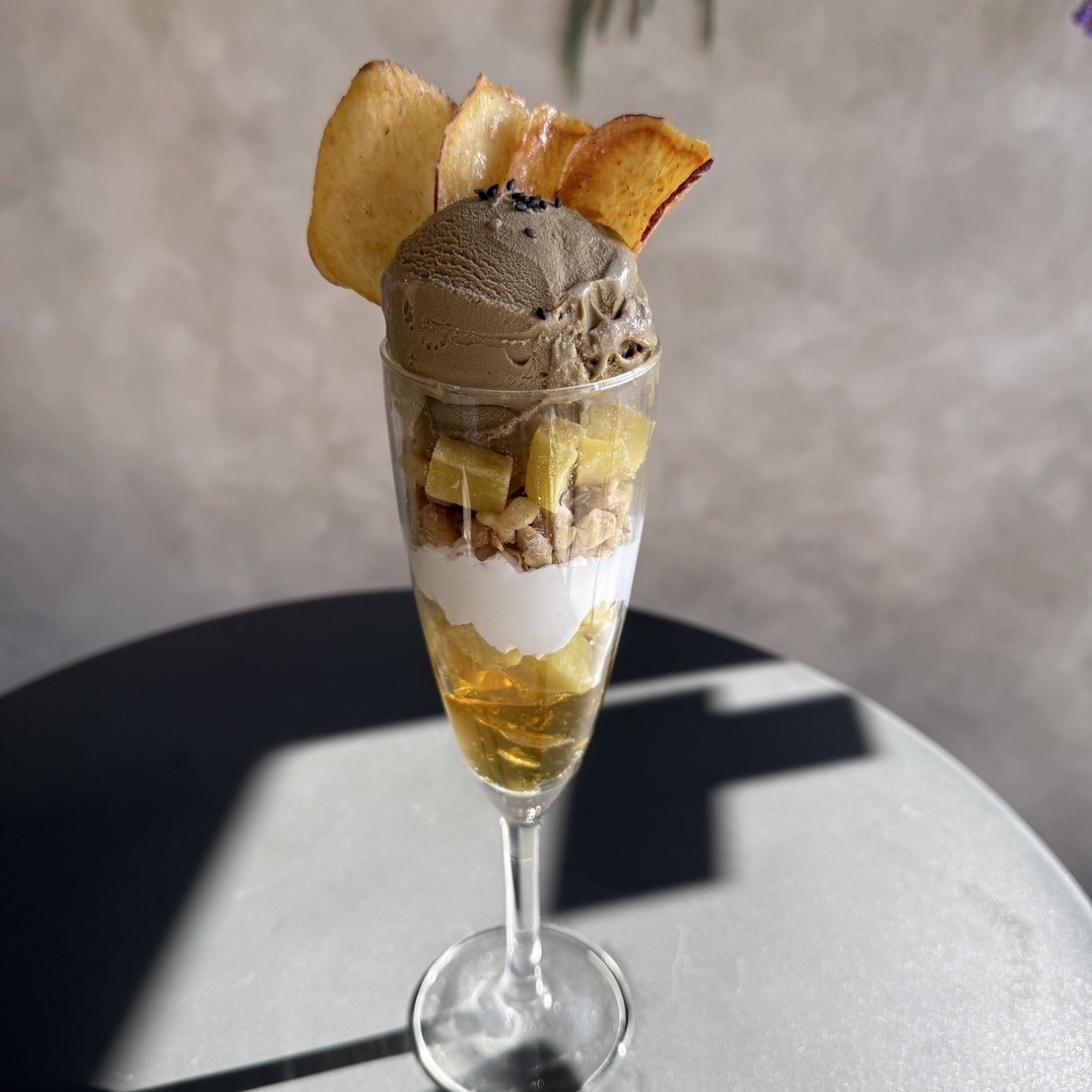 そんな果樹園のそばで、静かに過ごす時間が、日常に溢れる些細な“喧騒”をそっと遠ざけてくれます。 カフェで頬張る一口のパフェ。窓越しに見える緑の景色。