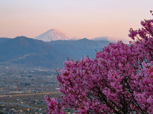 辺り一面が淡いピンク色に染まります。夏から秋にかけては、ぶどうや桃が実りの季節を迎えます。